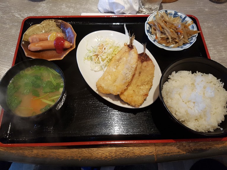 On Tuesday the main dish was tempura fish. The fish was so soft that you actually eat it with the bones but don’t feel them. And as side dish there were two mini sausages and bamboo shouts salad.