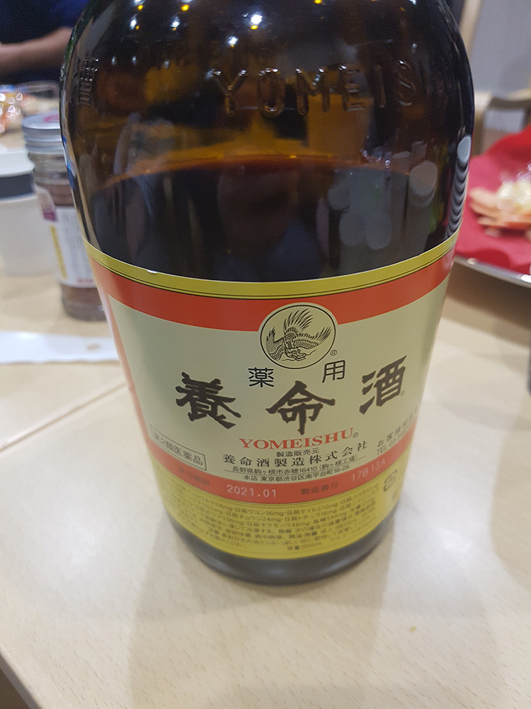 We had additionally some Karaage — sorry no picture — and I got some sake. And it is very interesting how they pour the sake.So you get that wooden cube with the glass inside and they pour the sake in the glass until it overflows and fill the cube to the half. Then you drink from the glass and when the glass is empty you refill it with the cube.
