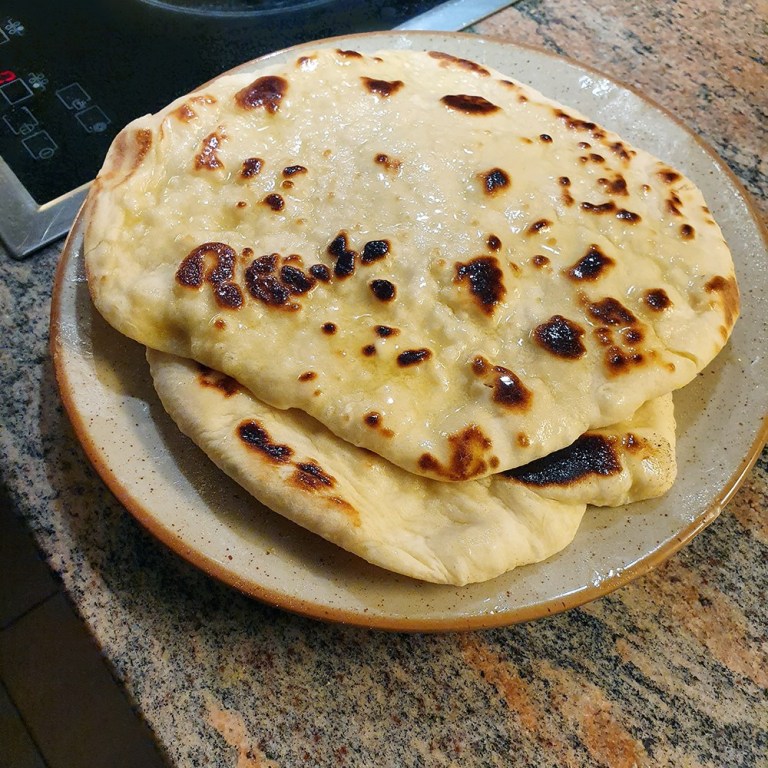 If you want to bring the garlic side of those Naans higher, instead of brushing them with simple butter or ghee, you can prepare a garlic butter and brush it on the hot Naan.