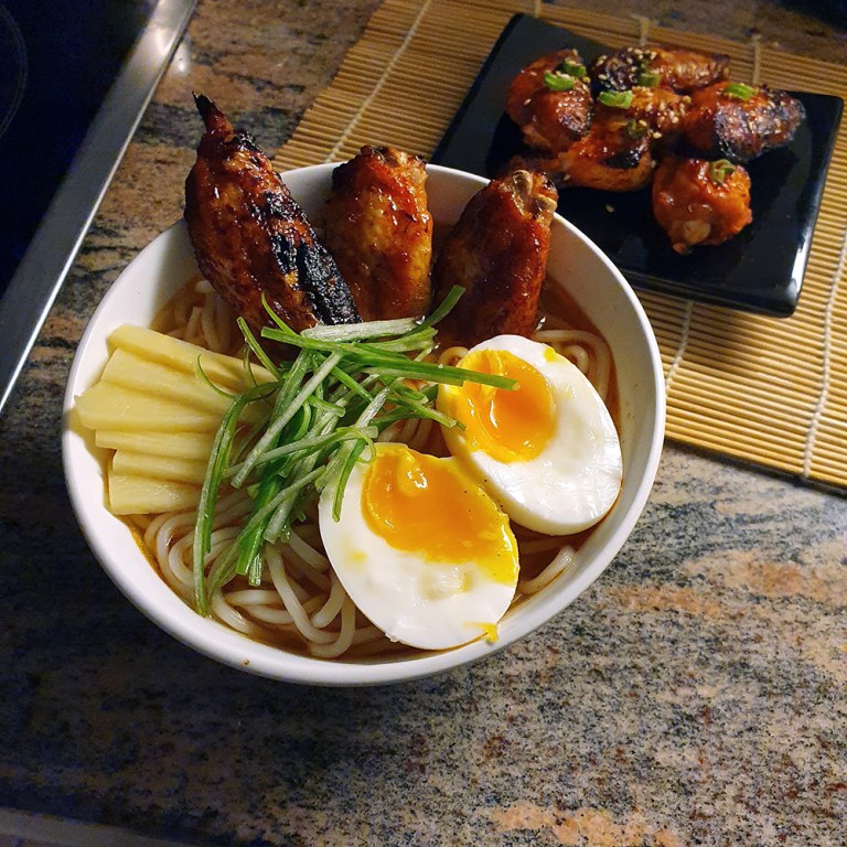 The Gochujang combo: Gochujang Ramen with a side dish of Gochujang glazed chicken wings.