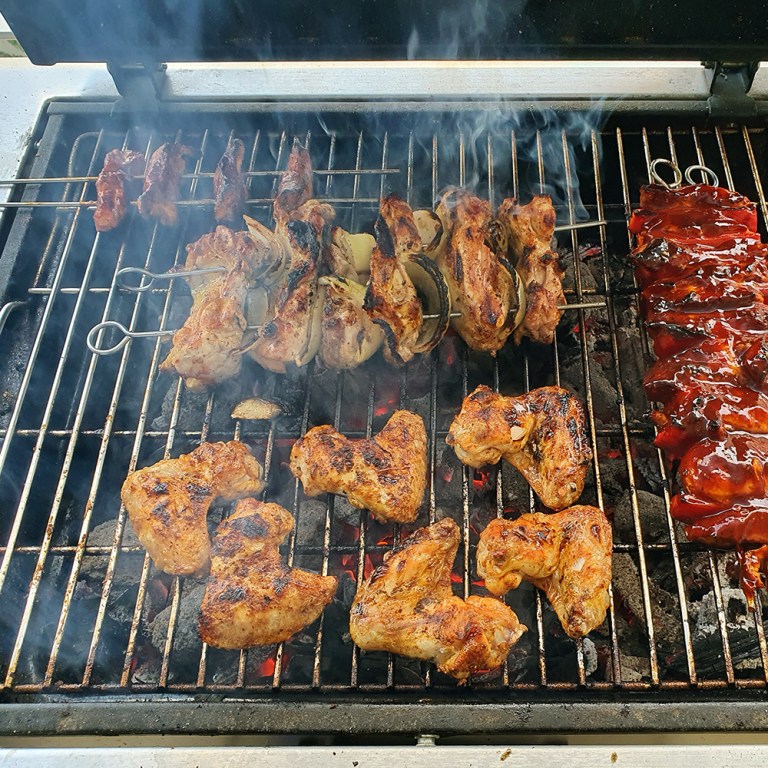 Finally, if you are worried that the middle of the chicken is not fully cooked, you can remove the meat from the skewers and cook each piece individually on the barbecue.